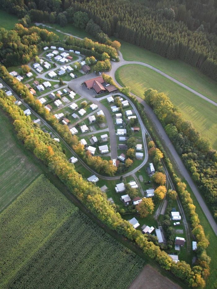 Wiesengelände oberhalb des Stausees in Hanglage, teilterrassiert, unparzelliert und mit wenig Schatten. Jugendraum. Boccia. Trampolin. Separater Jugendplatz. Ort 1 km entfernt. Touristen-/Dauerstellplätze 30/100.