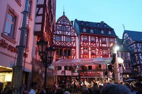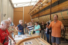 Am nächsten Tag wechselten wir auf den Campingplatz bei der Marina Mittelmosel in Neumagen-Drohn. Leider fiel unsere Fahrt mit dem Römerschiff aus, da die Instandsetzung noch nicht beendet ist. So blieb es bei einem Besuch in der „Werft“ mit einem interessanten Bericht zur Restaurierung. Die nächsten vier Nächte verbrachten wir dann im „Sun Park“ in Graach, wo wir Plätze direkt an der Mosel hatten, obwohl wg. des Weinfestes in Bernkastel-Kues doppelt so viele Wohnmobile dort standen als gewöhnlich. Noch am Ankunfts-Nachmittag radelten wir von dort zur Führung nach Bernkastel-Kues. Die erste sportliche Herausforderung gab es am nächsten Tag mit einer Tour in den Hunsrück, wobei zwischen Graach und Graach Schäferei gleich ca. 200 Höhenmeter auf 2.500 m Strecke bewältigt werden mussten. Alle Radler haben das mit Bravour geschafft!