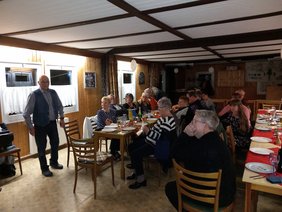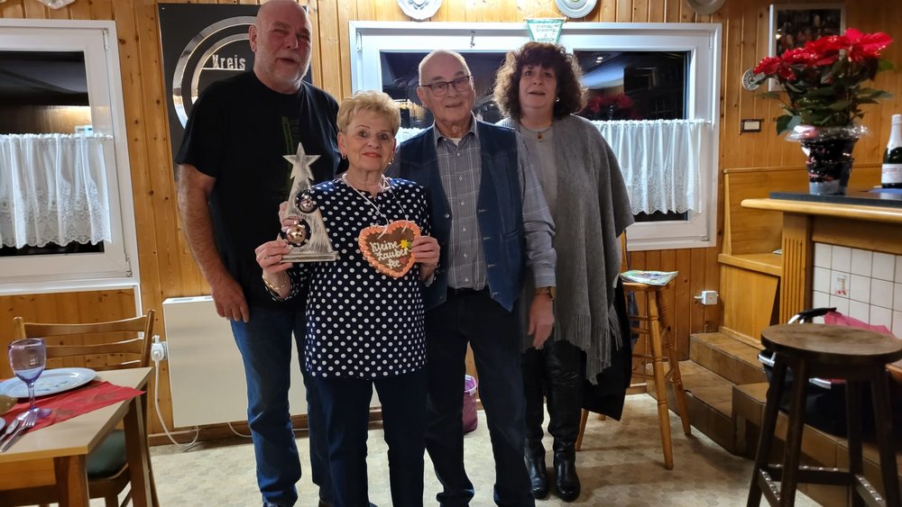 Der Abend begann mit einem sensationellen und sehr üppigen Buffet vom unserem Freund Daniel. Michael Erkens, Vorsitzender des CC Kreis Kleve, hieß noch einmal alle herzlich willkommen und gratulierte dem CRF zu seinem Jubiläum. Auch Monika ließ es sich nicht nehmen, sichtlich bewegt ein paar liebe Worte an Friedhelm und Doris zu richten. Insbesondere das Engagement von Friedhelm und Doris über eine sehr lange Zeit in der Vereinsführung wurde hervorgehoben und den beiden mit Blumen, einem Reisegutschein, kleinen Geschenken (Doris bekam einen Orden) und Anekdoten gedankt. Als Überraschung für Doris, hatte sich heimlich Tochter Sandra ins Geschehen geschlichen. Sichtlich gerührt bedankten sich die beiden.
